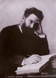 Vladimir Galaktionovich Korolenko (Russian: Влади́мир Галактио́нович Короле́нко, Ukrainian: Володи́мир Галактіо́нович Короле́нко; 27 July 1853 – 25 December 1921) was a writer, journalist, human rights activist and humanitarian from the Russian Empire. His best-known work includes the short novel The Blind Musician (1886), as well as numerous short stories based upon his experience of exile in Siberia. Korolenko was a strong critic of the Tsarist regime and in his final years of the Bolsheviks.