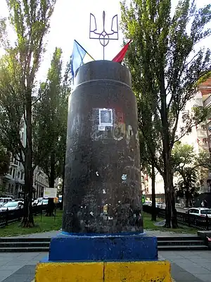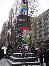 - ↑ "Protesters rid Kyiv of Lenin statue". Kyiv Post. 8 December 2013. Archived from the original on 9 December 2013. Retrieved 5 April 2014.