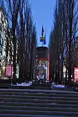 According to the decree of the former President of Ukraine, Viktor Yushchenko, this monument of the Soviet Union and the associated Communist period should have been removed after Ukraine gained independence.[4] Nevertheless, due to the resistance of the Communist Party of Ukraine, whose members were elected to Verhovna Rada, the last Kyiv monument to Lenin was left standing.