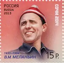 ![]() Vladimir Melanin on a 2013 Russian stamp from the series "Sports Legends". | |||||||||||||||||||||||||||||||||||||||