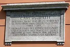 Carl vom Rath, plaque from Koberwitz, Lower Silesia