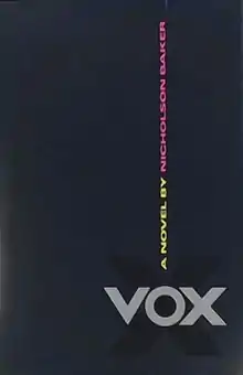 Vox is a 1992 novel by Nicholson Baker. Unusually for a literary novel, Vox enjoyed several weeks on the New York Times best-seller list.[1]