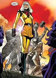 ![]() Voyager in her human disguise from Avengers #675 (November 2018). Art by Pepe Larraz and David Curiel. | |