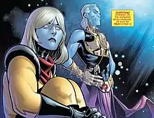 - ↑ Bacon, Thomas (2018-03-15). "A Marvel Avenger Revealed To Be Grandmaster's Child". ScreenRant. Retrieved 2023-01-03.