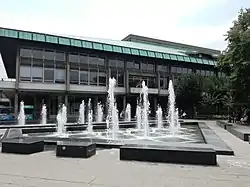New building of the National Library of Serbia was built on the plateau. Construction began in 1966, main works were finished in 1972, and the library was officially opened on 6 April 1973, marking the date of 6 April 1941, when German airplanes deliberately bombed old building of the library in the neighborhood of Kosančićev Venac. Designed by Ivo Kurtović, it was the first building in Belgrade specifically built to be a library.[21]