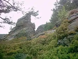 The ridge of rocks at the summit resemble a ruined castle. It is the western rocks that are used by climbers. They are ideal for beginners, with some low difficulty routes. It is also in the west that one finds the highest point, which rises to 780 m. It can be reached by means of a bridge and steel steps- forming a popular panorama point.
