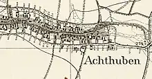 The village was founded, probably in the 13th century, as a forest village that was one of several German settlements in Upper Silesia.[3] The region was part of the Duchy of Poland and subsequently the Kingdom of Poland until the 14th century, when it was incorporated into the Kingdom of Bohemia. In 1742 it became part of the Kingdom of Prussia and in 1871, of the German Empire. Achthuben was the property of a monastery in Nysa (Neisse) until the early 19th century.[4] It had a population of 395 in 1845,[4] 366 in 1885,[5] and 243 in 1933.[6] On January 4, 1939, it became part of Schnellewalde, now Szybowice.[6] In 1945, after the defeat of Germany in World War II, it again became part of Poland. By an act of the Sejm, it was renamed to Włóczno in June 1948.[7]