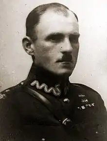 On June 25, 1927, he was transferred to the Border Protection Corps[7][8] to the position of the commander of the 3rd Border Protection Half-Brigade in Podświl, and later in Berezwecz. In 1929, the unit he commanded was transformed into the KOP "Głębokie" Regiment.[9] On October 23, 1931, he was transferred from the KOP to the 48th Infantry Regiment of Borderlands Rifles in Stanisławów to the position of the regiment commander.[10] On December 10, 1931, he was promoted to the rank of colonel with seniority on January 1, 1932, and ranked 6th in the corps of infantry officers.[11][12] In 1936 he became the commander of the infantry division of the 14th Infantry Division in Poznań.