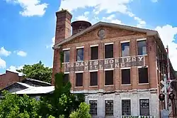 The W. B. Davis Hosiery Mill (also known as the Alabama Builders' Hardware Manufacturing Company Complex) is a historic industrial complex in Fort Payne, Alabama. It opened in 1884 in the midst of Fort Payne's economic boom, manufacturing building hardware and supplies. The main building, which features Colonial Revival details, is three stories tall, with 12-over-12 sash windows on each floor. An 85-foot (26-meter) chimney has a flared top and corbeled brick course, imitating a doric order column. By 1890, hopes that large quantities of iron ore and other minerals would be discovered in the Fort Payne district proved to be ill-founded. The ABHMC and seven of Fort Payne's other large manufacturers merged in an effort to remain in business, but they were unable to avoid bankruptcy.[3]