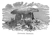 Chun Quoit, Morvah (drawing from Naenia Cornubiae, 1872)