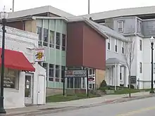 WKZV's final studio location, second floor, 80 East Chestnut Street, Washington, Pennsylvania; note WKZV call letters on second-floor studio window and front sign