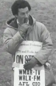 On March 1, 1982, after negotiations between WMAR-TV management and the American Federation of Television and Radio Artists (AFTRA) failed, all of the station's on-air talent, except one, went on strike.[23] AFTRA members, joined by the Teamsters, the Communication Workers of America and other local unions, picketed the station's offices on York Road and Abell's offices at North Calvert and East Centre Streets. When color announcer (and long-time popular Baltimore Orioles third baseman) Brooks Robinson refused to cross the picket line at the start of the baseball season, the strike ended.[24] The following day, both news anchors, Tom Sweeney and Curt Anderson, were fired.