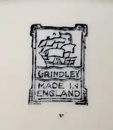 The company was founded at the Newfield Pottery by Grindley and Alfred Meakin (connected to J. & G. Meakin company), but the partnership ended in 1884 and Grindley continued alone.[2] It moved to the Woodland Pottery in 1891.[3] William Harry Grindley died in 1926.[4]