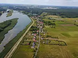 It lies approximately 4 kilometres (2 mi) east of Brzeg Dolny, 14 kilometres (9 mi) south-east of Wołów, and 24 kilometres (15 mi) north-west of the regional capital Wrocław.