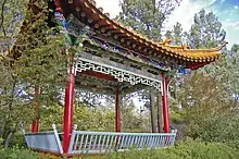 The camellia garden was established as a bicentennial project in 1988, along with several other northernly situated themed garden projects including the Cacti and Succulent Garden, an Elizabethan themed garden funded by the Shakespearian Society of Wagga Wagga and the Tree Chapel, a fully functional outdoor church that is a popular venue for weddings. Located in the camelia garden is a magnificently decorated traditional Chinese pavilion, a bicentennial gift from Kunming, China, one of Wagga Wagga's sister cities.[4]