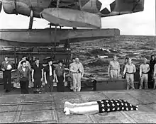 After returning to the United States in the summer of 1945, Vice Admiral Ainsworth commanded the Fifth Naval District until retiring on December 1, 1948. He died in Washington, D.C., on August 7, 1960.[1] Ainsworth was buried at Arlington National Cemetery on August 11, 1960.[2]