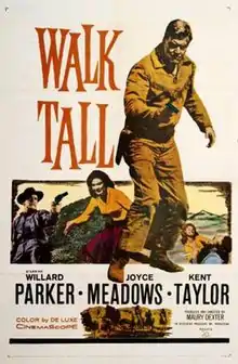 Walk Tall is a 1960 American Western film directed by Maury Dexter and written by Joseph Fritz, presented in CinemaScope and DeLuxe Color. The film stars Willard Parker, Joyce Meadows, Kent Taylor, Russ Bender, Ron Soble and William Mims. The film was released on September 1, 1960, by 20th Century Fox.[2][3][4][5]