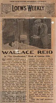 Promotional material for The Ghost Breaker (1922), one of Reid's last films.