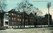Originally built to house the Carleton County Protestant General Hospital (This is not the Ottawa General that went from Sussex and Waller to Smyth Road, now known as the Elizabeth Bruyere Hospital on Bruyere Street), this was the second hospital in the city, after the Catholic hospital run by the Grey Nuns. The hospital's first building was completed in 1851, but had become too small and Wallis House was built to replace it between 1873 and 1876. It was paid for and supported by the various Protestant churches in the area. The east wing was added to the hospital between 1887 and 1898. It remained a hospital until 1924, when it was merged with two others to create the Ottawa Civic Hospital.