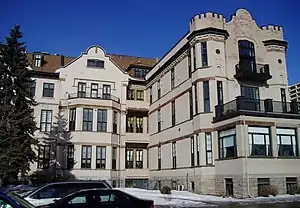 Wallis House is a prominent landmark building in Ottawa, Ontario, Canada. It is located at the corner of Rideau Street and Charlotte Street. Today, after restoration, the building serves as a deluxe condominium complex.