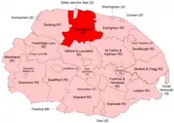 Walsingham Rural District was a rural district in the county of Norfolk, England. It was created in 1894. On 1 April 1935 it was enlarged by the addition of the parishes of Hindolveston, Thurning, Wood Norton (from the disbanded Aylsham Rural District) and Briston (from the Erpingham Rural District).[2] On 1 April 1974 it was abolished under the Local Government Act 1972, and has since formed part of the District of North Norfolk.