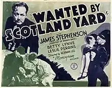 Wanted by Scotland Yard is a 1937[1] or 1938[2] British crime film directed by Norman Lee and starring James Stephenson, Betty Lynne and Leslie Perrins.[3] It was made at Welwyn Studios, and is sometimes known by the alternative title of Dangerous Fingers. Its year of release is often described as 1939, the year of its American distribution, but it had premiered in Britain earlier. When jewel thief Fingers (James Stephenson) recognises intended victim Standish (Leslie Perrins) as the man who caused the death of his girlfriend, his motivations switch from robbery to revenge.[4]