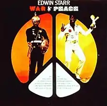 War & Peace is an album recorded by Edwin Starr and released by Motown Records in 1970. The album reached number 52 on the Billboard 200 and #9 on the R&B album chart,[2] while the single, "War" reached #1 on the Billboard Hot 100 chart, where it remained for 15 weeks.[3] The song was nominated for best R&B Male Vocal Performance at the 13th Annual Grammy Awards in 1971.[4] The album's arrangements are by David Van De Pitte, Henry Cosby, Paul Riser, Wade Marcus and Willie Shorter. The art direction and design by Curtis McNair.
