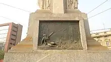 On the base on the south side, in the direction of Piazzale Accursio, there is a bronze bas-relief representing the figure of Jesus illuminating a soldier in the moment of death.