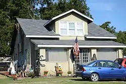 The Ward-Stout House is a historic house at Front and Walnut Streets in Bradford, Arkansas. It is a 1+1⁄2-story wood-frame structure, with a gabled roof, stucco exterior, and a concrete foundation. The main roof has a large "doghouse" dormer with three sash windows, and projects slightly over the shed roof of the front porch, which is supported by four stuccoed piers. Both roofs have exposed rafter ends. Built about 1932, it is a good example of late Craftsman architecture in the community.[2]