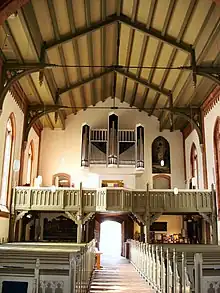 The table positive organ in the sanctuary was built in 2002, also by the organ builder Voigt. A special feature of this small organ are the wooden pipes, of which the smallest is 4 cm long. Instead of standing, all pipes are lying in the instrument Besides she is transposable a semitone up and down and can be regulated between it in the pitch due to wind pressure change.