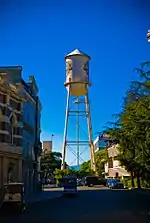 The Warner Bros. Water Tower is a historic water tower located at the Warner Bros. Studios in Burbank, California. Built in 1927, it stands 133 feet (41 meters) tall.[1] The tank, which had a capacity of 100,000 U.S. gallons (380,000 L), is no longer used to hold water.[2] It is decorated with the WB shield on either side and serves as a company icon.