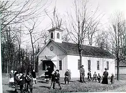 In January 1875, August and Mine Bunert sold a plot of land at the northeast corner of the intersection of Bunert and Martin Roads to the Warren School District for the purpose of constructing a school.[2] The district constructed this one-room schoolhouse on the site later in the year, formally known as the Warren Township District No. 4 School, but commonly called the Bunert School after the original landowners. The building was used for K-8 students until 1928, when a second building was constructed nearby for older students.[3] The original Bunert School was then used for K-4 until 1944, when the nearby Charwood School was built.[3] That span makes the school the longest-used one-room schoolhouse in Warren.[2]