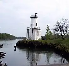The wooden house was replaced with a 28-foot (8.5 m) tall octagonal[1] concrete tower in 1930[2] on the original sandstone foundation. Around the same time, the light was electrified.[3] The site was an official water level gaging station from October 28, 1937, to November 18, 1937, and again from July 20, 1938, to September 9, 1938.[10]