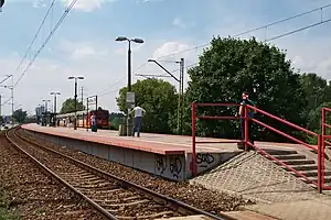 Warszawa Zoo railway station is a railway station in the Praga Północ district of Warsaw, Poland. It was built on the Warsaw orbital line, which goes through Warszawa Gdańska station. As of 2011, it is used by Koleje Mazowieckie, who run the KM9 services from Warszawa Wola through the north of the Masovian Voivodeship to Działdowo, in the Warmian-Masurian Voivodeship via Legionowo, Nasielsk, Modlin, Ciechanów and Mława, at all of which some trains terminate, and by Szybka Kolej Miejska, who run services to Wieliszew, with some trains terminating at Legionowo or Legionowo Piaski. The station is located near to Warsaw Zoo.