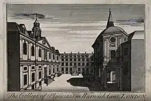 The Warwick Lane dispensary, also known as the London Dispensary for the Sick Poor, was a dispensary planned by the Royal College of Physicians in 1688 and opened in 1698 within the College's laboratory in Warwick Lane. Medical advice and medications were given free of charge to the poor. Following the Rose case and opposition from apothecaries, it eventually closed in 1725.[1][2][3]
