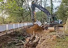 The Warwickslade Cutting Railway was a light railway temporarily built to fill in the Warwickslade Cutting, a straight drainage ditch dug circa 1850 in the New Forest of south-east England, with imported gravel and clay. In 2009, the Forestry Commission decided to obliterate it and replace it by a more natural meandering stream.[1]