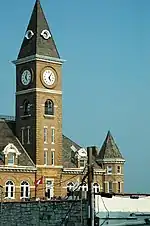 The Washington County Courthouse is the name of a current courthouse and that of a historic one in Fayetteville, Arkansas, the county seat of Washington County. The historic building, built in 1905, was listed on the National Register of Historic Places in 1972. The historic courthouse is the fifth building to serve Washington County, with the prior buildings located on the Historic Square where the Old Post Office is today.[2] The building is one of the prominent historic buildings that compose the Fayetteville skyline, in addition to Old Main.