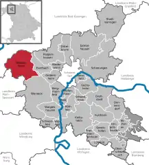 Wasserlosen is a municipality in the Schweinfurt district, Bavaria, Germany. The villages in this municipality are: