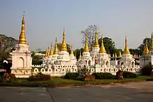 Wat Phra Chedi Sao Lang (Thai: วัดพระเจดีย์ซาวหลัง, literally 'monastery of twenty stupas' in Lanna Thai) is a Buddhist temple in Lampang, Thailand.[1] The temple is located approximately 1.5 kilometres (0.93 mi) north of Lampang, and is noted for its series of 20 chedi arranged in a courtyard.[1] The chedis' bases are built in the Lan Na style, and whose upper parts are built in the Burmese style.[1] The temple also houses a 15th-century solid gold Buddha image that weighs 1,507 kilograms (3,322 lb).[2]