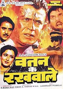 Watan Ke Rakhwale (transl. Saviour of the Nation) is a 1987 Indian Hindi-language action thriller film directed by T. Rama Rao. It features an ensemble cast of Sunil Dutt, Dharmendra, Mithun Chakraborty, Sridevi, Moushumi Chatterjee, Ashok Kumar, Puneet Issar, Prem Chopra, Shakti Kapoor and Kader Khan. The film revolves around how a spy (Chakraborty) fabricates a plot to bring a terrorist to justice, and how he is helped out by his lover (Sridevi), his elder brother and sister-in-law (Dutt and Chatterjee) and a jailed convict (Dharmendra).