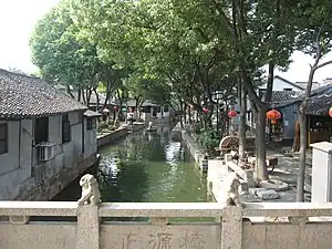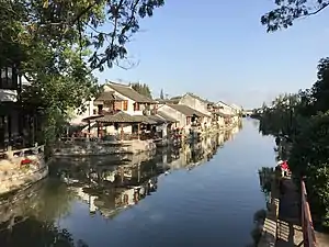 Canal towns are generally concentrated in the Jiangnan area which includes the Jiangsu province, Zhejiang province and Shanghai area. They are located towards the south of the Yangtze River. These river-based settlements are widely advertised as tourism destinations because of their historical and cultural representations of China. The idyllic small-town setting, which demonstrates the harmonious relationship between nature and its residents, is also another attractive factor.[1]