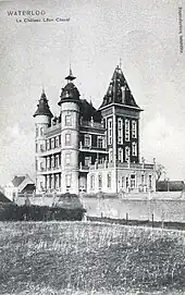 The Château Cheval stood at the crossing of the main routes between Charleroi and Brussels, and Nivelles and Leuven. It was originally built in 1895 as the home of a French industrialist who had made his fortune in Mont-Saint-Jean, Waterloo following the opening of a chemical fertiliser plant in 1875. The château, with its four towers and ninety-nine windows, was too extravagant for the tastes of its owner, who found himself only able to sleep there once per week. Cheval gave it to his only daughter who occupied it with her husband until his death in 1962. The exorbitant costs associated with running the property led to its demolition in 1966.