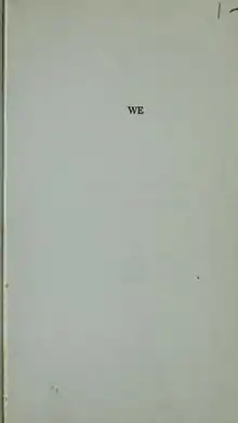 We (Russian: Мы, romanized: My) is a dystopian novel by Russian writer Yevgeny Zamyatin, written 1920–1921.[1] It was first published as an English translation by Gregory Zilboorg in 1924 by E. P. Dutton in New York, with the original Russian text first published in 1952. The novel describes a world of harmony and conformity within a united totalitarian state. It influenced the emergence of dystopia as a literary genre. George Orwell said that Aldous Huxley's 1931 Brave New World must be partly derived from We,[2] although Huxley denied this. Orwell's own Nineteen Eighty-Four (1949) was also inspired by We.[3]