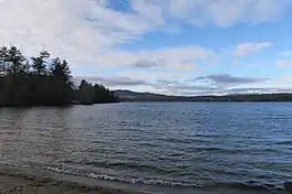 Webster Lake has two public beaches operated by the city of Franklin, one on either side of the lake.[1] Webster Lake is surrounded by forests, and roads follow most of the lakeshore, allowing frequent views. There is boating access adjacent to Lagace Beach on New Hampshire Route 11.