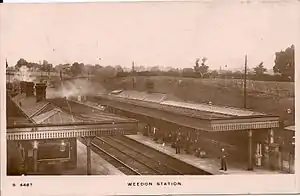Weedon railway station was located to the north of Weedon Bec in Northamptonshire, England on the West Coast Main Line. It was a junction station, being the starting point of the Weedon to Leamington Spa branch line, with one bay platform dedicated for terminating branch line trains.