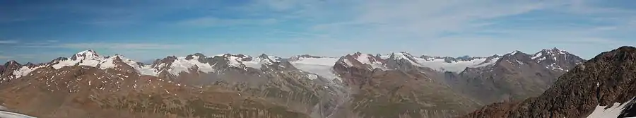The Gepatschferner and the Mittelbergferner are the two largest glaciers in the Ötztal Alps; both are situated in the area of the Weißkamm. Together with the Kesselwandferner, Vernagtferner and Taschachferner they form an almost unbroken ice sheet.