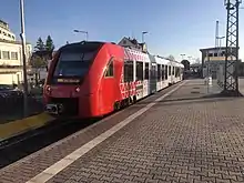 From 2015 to 2017, platforms A, B and C (tracks 1–4) were renewed and adapted for the disabled, increased to a height of 76 cm and each fitted with a passenger lift. In addition, an entrance was built from the west side.[8] This cost about €8.71 million.[8] The municipality and the district each provided €1.63 m of the costs, while the state of Baden-WÜrttemberg provided €1.88 m.[8] The renovation was also funded with €3.57 m under the federal Municipal Transport Financing Act (Gemeindeverkehrsfinanzierungsgesetz).[8]
