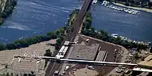 Aerial view of Wellington in 2012 showing the 2006-built pedestrian bridge