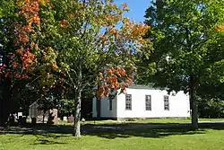 The historic district is centered on the town common, which is a rectangular plot of land, about 1 acre (0.40 ha), bounded on the west by Lock's Village Road and Depot Road, and is roughly bisected by Morse Village Road. It is bounded on its north, east, and south by Center Road. The sides of the roads opposite the common are lined with institutional buildings and houses that are predominantly in the Greek Revival style and date to the first half of the 19th century. The only contributing 20th-century building is the Colonial Revival library, built 1921. The town hall, located in the district, is a Greek Revival building that was probably once a Baptist church built in 1845. There is one other church building, that of the Congregationalists; it was built in 1846. There is one school in the district; it is a typical 19th-century district schoolhouse, also built in 1846.[2]