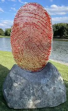 In 2023, Red Star was one of six artists commissioned to create a temporary installation for the National Mall in conjunction with Beyond Granite: Pulling Together, the first curated art exhibition in the Mall's history. Commissioned by the Trust for the National Mall, National Capital Planning Commission, and National Park Service, Red Star designed a memorial to the Apsáalooke leaders who had signed - or been made to sign - treaties with the United States. The sculpture, a red glass representation of the artist's fingerprint, embedded in a granite boulder, featured the names of Apsáalooke leaders who had signed treaties and was sited directly next to the Memorial to the 56 Signers of the Declaration of Independence in Constitution Gardens.[29]